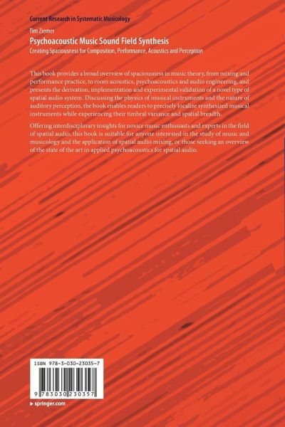 This book provides a broad overview of spaciousness in music theory, from mixing and performance practice, to room acoustics, psychoacoustics and audio engineering, and presents the derivation, implementation and experimental validation of a novel type of spatial audio system. Discussing the physics of musical instruments and the nature of auditory perception, the book enables readers to precisely localize synthesized musical instruments while experiencing their timbral variance and spatial breadth.