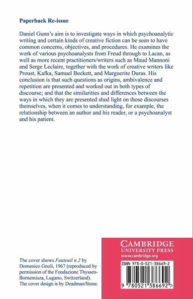 Daniel Gunn's aim is to investigate ways in which psychoanalytic writing and certain kinds of creative fiction can be seen to have common concerns, objectives and procedures.