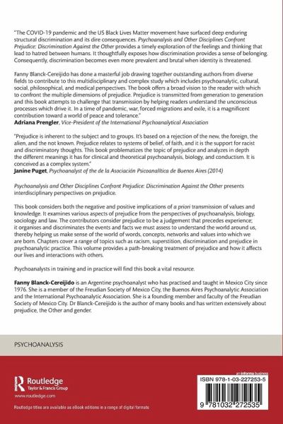 Fanny Blanck-Cereijido has done a masterful job drawing together outstanding authors from diverse fields to contribute to this multidisciplinary and complex study which includes psychoanalytic, cultural, social, philosophical, and medical perspectives. The book offers a broad vision to the reader with which to confront the multiple dimensions of prejudice. Prejudice is transmitted from generation to generation and this book attempts to challenge that transmission by helping readers understand the unconscious processes which drive it. In a time of pandemic, war, forced migrations and exile, it is a magnificent contribution toward a world of peace and tolerance."