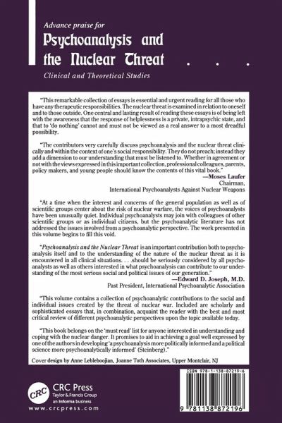 The analytic literature has heretofore been silent about the issues inherent in the nuclear threat. As a groundbreaking exploration of new psychological terrain, Psychoanalysis and the Nuclear Threat will function as a source book for what, it is hoped, will be the continuing effort of analysts and other mental health professionals to explore and engage in-depth nuclear issues. This volume provides panoramic coverage of the dynamic and clinical considerations that follow from life in the nuclear age. Of special interest are chapters deling with the developmental consequences of the nuclear threat in childhood, adolescence, and adulthood, and those exploring the technical issues raised by the occurrence in analytic and psychotherapeutic hours of material related to the nuclear threat. Additional chapters bring a psychoanalytic perspective to bear on such issues as the need to have enemies; silence as the "real crime"; love, work, and survival in the nuclear age; the relationship of the nuclear threat to issues of "mourning and melancholia"; apocalyptic fantasies; the paranoid process; considerations of the possible impact of gender on the nuclear threat; and the application of psychoanalytic thinking to nuclear arms strategy. Finally, the volume includes the first case report in the English language - albeit a brief psychotherapy - involving the treatment of a Hiroshima survivor. A noteworthy event in psychoanalytic publishing, Psychoanalysis and the Nuclear Threat betokens analytic engagement with the most pressing political and moral issue of our time, a cultivating of Freud's "soft voice of the intellect" in an area where it is desperately needed.