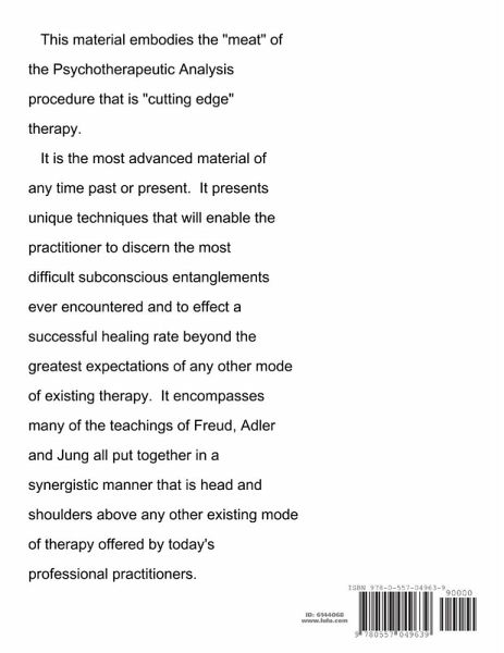 This material is "cutting edge" and is the most advanced material of any time past or present. It embodies unique techniques that enables the practitioner to discern the most difficult subconscious entanglements ever encountered and to effect a successful healing rate beyond the greatest expectations of any other mode of existing therapy today.