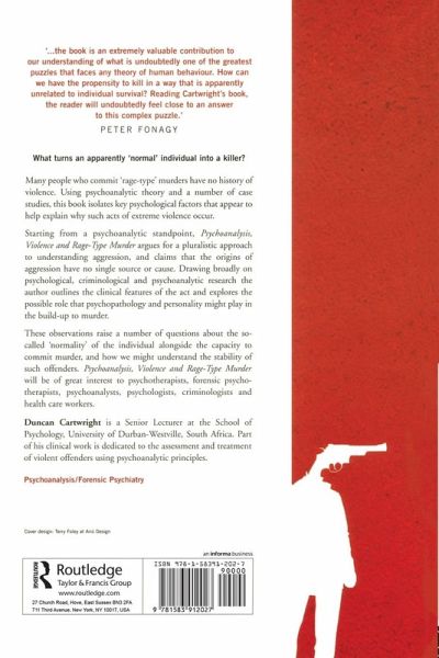 What turns an apparently 'normal' individual into a killer? Many people who commit "rage type" murders have no history of violence. Using psychoanalytic theory and a number of case studies, this book isolates key psychological factors that appear to help explain why such acts of extreme violence occur. Starting from a psychoanalytic standpoint, Psychoanalysis, Violence and Rage-Type Murder argues for a pluralistic approach to understanding aggression, and claims that the origins of aggression have no single source or cause. Drawing broadly on psychological, criminological and psychoanalytic research the author outlines the clinical features of the act and explores the possible role that psychopathology and personality might play in the build up to murder. These observations raise a number of questions about the so-called 'normality' of the individual alongside the capacity to commit murder, and how we might understand the stability of such offenders. Psychoanalysis, Violence and Rage-Type Murder will be of great interest to psychotherapists, forensic psychotherapists, psychoanalysts, psychologists, criminologists and health care workers.