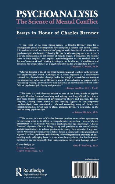 Over the course of three decades, in works spanning questions of theory, technique, and clinical practice, Charles Brenner has emerged as one of the preeminent analysts of his generation, a thinker whose probing estimation of mental conflict has promoted the evolutionary growth of analysis as theory even as it has clarified the clinical import of analysis as therapy. In Psychoanalysis: The Science of Mental Conflict, distinguished theorists and clinicians pay homage to Brenner by presenting original essays that converge in their estimation of analysis as "the science of mental conflict." In sections that encompass "The Theory of Psychoanalysis," "The Concepts of Psychoanalysis," "The Technique of Psychoanalysis," "The Clinical Practice of Psychoanalysis," "The Teaching of Psychoanalysis," and "The Application of Psychanalysis," the contributors show how the perspective of conflict - broadened and refined by the clinical findings of recent decades - offers a vehicle for creative theory-building and, as such, a conceptual handle for apprising the indications for, and action of, psychoanalytic therapy. Arnold Richards' comprehensive overview of Brenner's ranging contributions to theory and practice, along with Martin Willick's critical introductions to the various sections of the book, round out a collections whose scope is complimented by its unusual coherence and thematic unity. Taken together, the essays comprising this book present readers with a cogent summary of current psychoanalytic thinking, along with an exciting preview of where it is heading in the future. As such, this volume will be welcomed not only by analysts, but by all mental health professionals who draw on, and learn from, the psychoanalytic assessment of conflict in mental life. It is a work that follows Brenner's own example in promoting the critical understanding of a generation of theorists, clinicians, and educators.