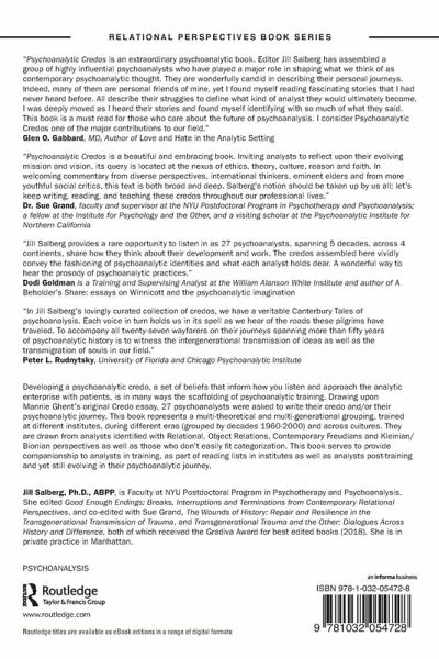 "Psychoanalytic Credo is a beautiful and embracing book. Inviting analysts to reflect upon their evolving mission and vision, its query is located at the nexus of ethics, theory, culture, reason and faith. In welcoming commentary from diverse perspectives, international thinkers, eminent elders and from more youthful social critics, this text is both broad and deep. Salberg's notion should be taken up by us all: let's keep writing, reading, and teaching these credos throughout our professional lives."