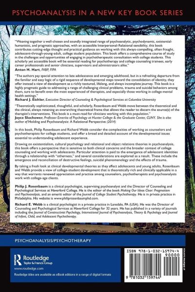 Rick Webb and Phil Rosenbaum have given the world of counseling of college students an erudite and practically useful coverage of how psychoanalytic psychotherapy is not just a tool for treating different clinical cases but an ally that makes the guidance of student development possible. This is a rare focus in both psychoanalysis and in college level education-much needed as the future of the students is what matters most in the humanistic future of our Society.