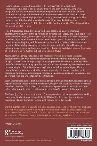 Psychoanalytic Therapy with Infants and Parents provides a clear guide to clinical psychoanalytic work with distressed babies and unhappy parents, a numerous clinical group so often in need of urgent help. Although psychoanalytic work is primarily verbal, and infants may have limited language, this form of treatment is receiving increased attention among therapists. Björn Salomonsson explores how such work can be possible and benefit infants, how to work with the parents (especially the mother), and how major psychoanalytic concepts such as primal repression, infantile sexuality and transference can be worked with and understood in these therapies.