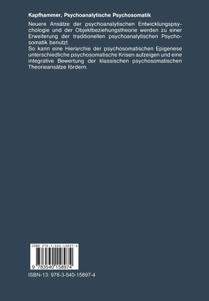 1. Der Beitrag der psychoanalytischen Psychosomatik im interdisziplinären Kontext der psychosomatischen Medizin.- 1.1. Forschungstrends und aktuelle Schwerpunkte als kri- tische Orientierung und Herausforderung für die Psychoanalyse.- 1.2. Moderne Ansatzmöglichkeiten der Psychoanalyse.- 2. Die Neurosenkonzeption der klassischen Psychoanalyse und ihre Auswirkungen auf psychosomatisches Denken.- 2.1. Indikationsbereich und traditionelles Verständnis des psychoanalytischen Geschehens.- 2.2. Praktische Konsequenzen der künstlichen Trennung von "psychoneurotisch" vs. "psychosomatisch" in der analytischen Situation und klinischen Praxis.- 2.3. Empirische Daten gegen eine psychoneurotisch-psycho- somatische Polarisierung.- 2.4. Exkurs (1): Begriffliche Präzisierung des Somatisie- rungskonzeptes.- 3. Die psychoneurotisch-psychosomatische Differenzierung im neu'rosentheoretischen Rahmen.- 3.1. Übersicht klassischer psychosomatischer Konzepte.- 3.2. Theoretisches Ungenügen.- 4. Das Alexithymiekonzept: Ein psychoanalytisches Para-digma der psychosomatischen Forschung.- 4.1. "Psychosomatisches Unbehagen" und die Folgen.- 4.2. Differenzierte Heterogenität des "psychosomatischen Phänomens".- 4.3. Exkurs (2): Sozialpsychologische Faktoren in der Alexi- thymie-Debatte.- Zusammenfassung.- 5. Affektivität: ein psychosomatisches Thema der Psychoanalyse.- 5.1. Affektivität.- 5.2. Affekte in der Entwicklungsdimension.- 6. Körperlichkeit: ein psychosomatisches Thema der Psycho- analyse.- 6.1. Der Körper und die psychoanalytische Situation.- 6.2. Der Körper in der Entwicklungsdimension.- 6.3. Präverbalität, Übergangsphase und Repräsentation.- 6.4. Körperliche Subjektivität, psychosoziale Realität und Handlungsmodell.- 6.5. GrundsätzlicheStörungsmöglichkeiten in der psycho- somatischen Epigenese der frühen Kindheit.- 7. Psychosomatische Theorie der Psychoanalyse.- 7.1. Bedrohte Existenz, Trennung und Individuation, Konflikte: Modelle psychosomatischer Krisen.- 7.2. Hierarchie der psychosomatischen Epigenese.- 7.3. Integrativer Bewertungsversuch der klassischen psycho- somatischen Theorieansätze.- 8. Kasuistischer Beitrag.- 8.1. Grund des psychiatrischen Erstkontaktes einer 20-jäh- rigen Patientin.- 8.2. Psychopathologischer Befund bei Aufnahme.- 8.3. Biographische Anamnese.- 8.4. Schilderung der Familienmitglieder.- 8.5. Einstellungen zu Körper, Sexualität und Emotionalität.- 8.6. Testergebnisse, Träume, literarische Skizzen.- 8.7. Theoretische Diskussion.- 9. Zusammenfassung: Ein spezifischer Beitrag der Psycho- analyse zur Psychosomatik.- 9.1. Definition und Problemstellung.- 9.2. Die klassischen neurosentheoretischen Ansätze.- 9.3. Von der medizinischen zur psychoanalytischen Betrachtung der psychosomatischen Fragestellung.- 9.4. Die psychosomatische Integrität in der psychoanalyti- sehen Begegnung.- 9.5. Die psychosomatische Integrität in der psychoanalyti- sehen Entwicklungspsychologie.- 9.6. Die psychosomatische Integrität in der psychoana- lytischen Sozialpsychologie.- 9.7. Bewertung und Ausblick.- Anhang: "Stadt".- "Dividuum".- Namensverzeichnis.- Kasuistik.
