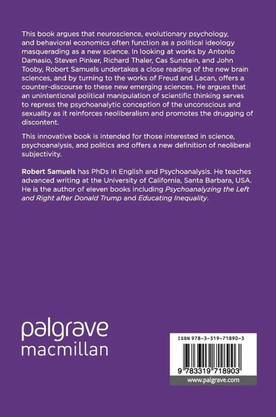 This book argues that neuroscience, evolutionary psychology, and behavioral economics often function as a political ideology masquerading as a new science. In looking at works by Antonio Damasio, Steven Pinker, Richard Thaler, Cas Sunstein, and John Tooby, Robert Samuels undertakes a close reading of the new brain sciences, and by turning to the works of Freud and Lacan, offers a counter-discourse to these new emerging sciences. He argues that an unintentional political manipulation of scientific thinking serves to repress the psychoanalytic conception of the unconscious and sexuality as it reinforces neoliberalism and promotes the drugging of discontent.