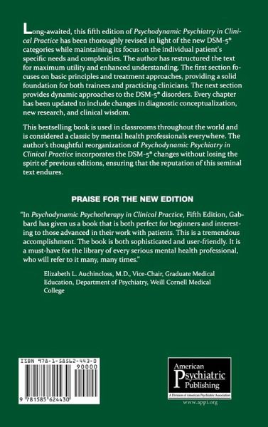 Long-awaited, this fifth edition of Psychodynamic Psychiatry in Clinical Practice has been thoroughly revised in light of the new DSM-5 categories while maintaining its focus on the individual patient's specific needs and complexities. The author has restructured the text for maximum utility and enhanced understanding.