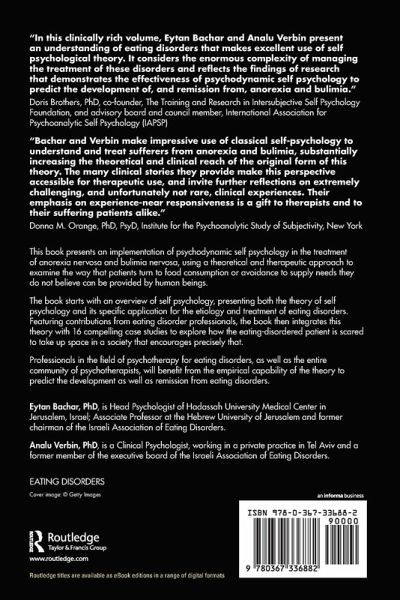 This book presents an implementation of psychodynamic self psychology in the treatment of anorexia nervosa and bulimia nervosa, using a theoretical and therapeutic approach to examine the way that patients turn to food consumption or avoidance in order to supply needs they do not believe can be provided by human beings. The book starts with an overview of self psychology, presenting both the theory of self psychology and its specific application for the etiology and treatment of eating disorders. Featuring contributions from eating disorder professionals, the book then integrates this theory with 16 compelling case studies to explore how the eating-disordered patient is scared to take up space in a society that encourages precisely that. Professionals in the field of psychotherapy for eating disorders, as well as the entire community of psychotherapists, will benefit from the empirical capability of the theory to predict the development as well as remission from eating disorders.
