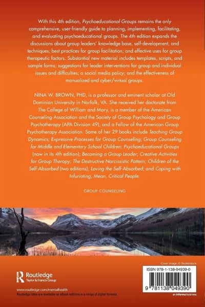 With this 4th edition, Psychoeducational Groups remains the only comprehensive, user-friendly guide to planning, implementing, facilitating, and evaluating psychoeducational groups. The 4th edition expands the discussions about group leaders' knowledge base, self-development, and techniques; best practices for group facilitation; and effective uses for group therapeutic factors. Substantial new material includes templates, scripts, and sample forms; suggestions for leader interventions for group and individual issues and difficulties; a social media policy; and the effectiveness of manualized and cyber/virtual groups.¿