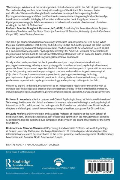 "Dr's Knowles, Keefer, and Mikocka-Walus have brought together a group of world experts in Psychogastroenterology who share their tricks of the trade. A necessary read for all interested in utlilising the brain-gut strategies to treat gastrointestinal conditions and associated psychological distress." - Professor Silvio Danese, MD, PhD; Head, IBD Center, Department of Gastroenterology Istituto Clinico Humanitas , and President of the European Crohn's and Colitis Organisation, Vienna, Austria