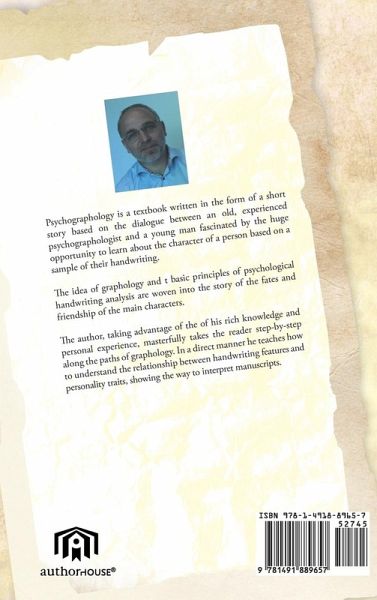 Psychographology is a textbook written in the form of a short story based on the dialogue between an old, experienced psychographologist and a young man fascinated by the huge opportunity to learn about the character of a person based on a sample of their handwriting. The idea of graphology and ¿¿t basic principles of psychological handwriting analysis are woven into the story of the fates and friendship of the main characters. The author, taking advantage of the of his rich knowledge and personal experience, masterfully takes the reader step-by-step along the paths of graphology. In a direct manner he teaches how to understand the relationship between handwriting features and personality traits, showing the way to interpret manuscripts.