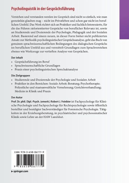 Verstehen und verstanden werden im Gespräch sind nicht so einfach, wie man gemeinhin glauben mag - nicht im Privatleben und schon gar nicht im beruflichen Umfeld. Das Werk richtet sich an Praktiker und fachlich Interessierte, für die das Führen zielorientierter Gespräche von beruflicher Relevanz ist, sowie an Studierende und Dozierende der Psychologie, Pädagogik und der Sozialen Arbeit. Basierend auf einem neuen, in dieser Form bisher nicht publizierten Ansatz zur Methodik psycholinguistischer Gesprächsanalyse, geht das Buch von genuinen sprachwissenschaftlichen Bedingungen des dialogischen Gesprächs im beruflichen Umfeld aus und vermittelt Grundlagen zum Sprachverstehen ebenso wie Werkzeuge zur vertieften Analyse von Gesprächen.