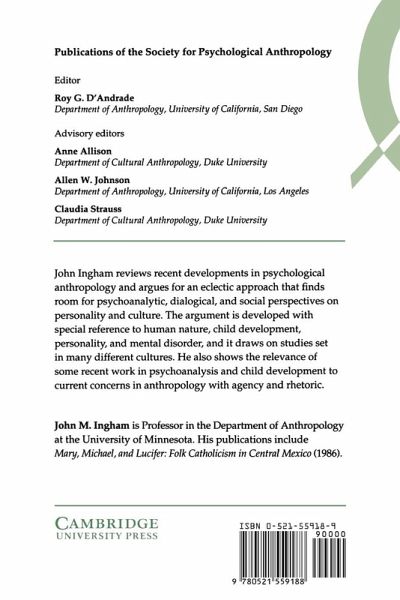 Reviews recent developments in pyschological anthropology and examines psychoanalytic, dialogical, and social perspectives on personality and culture.