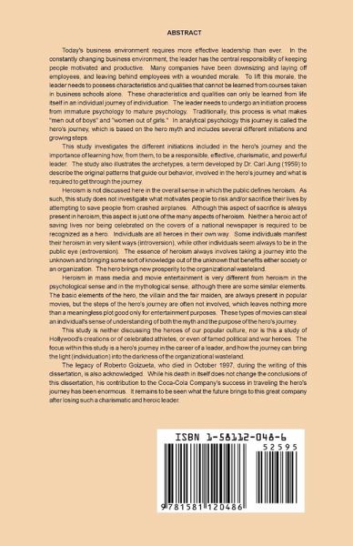 oday's business environment requires more effective leadership than ever. In the constantly changing business environment, the leader has the central responsibility of keeping people motivated and productive. Many companies have been downsizing and laying off employees, and leaving behind employees with a wounded morale. To lift this morale, the leader needs to possess characteristics and qualities that cannot be learned from courses taken in business schools alone. These characteristics and qualities can only be learned from life itself in an individual journey of individuation. The leader needs to undergo an initiation process from immature psychology to mature psychology. Traditionally, this process is what makes "men out of boys" and "women out of girls." In analytical psychology this journey is called the hero's journey, which is based on the hero myth and includes several different initiations and growing steps. This study investigates the different initiations included in the hero's journey and the importance of learning how, from them, to be a responsible, effective, charismatic, and powerful leader. The study also illustrates the archetypes, a term developed by Dr. Carl Jung (1959) to describe the original patterns that guide our behavior, involved in the hero's journey and what is required to get through the journey. Heroism is not discussed here in the overall sense in which the public defines heroism. As such, this study does not investigate what motivates people to risk and/or sacrifice their lives by attempting to save people from crashed airplanes. Although this aspect of sacrifice is always present in heroism, this aspect is just one of the many aspects of heroism. Neither a heroic act of saving lives nor being celebrated on the covers of a national newspaper is required to be recognized as a hero. Individuals are all heroes in their own way. Some individuals manifest their heroism in very silent ways (introversion), while other individuals seem always to be in the public eye (extroversion). The essence of heroism always involves taking a journey into the unknown and bringing some sort of knowledge out of the unknown that benefits either society or an organization. The hero brings new prosperity to the organizational wasteland. Heroism in mass media and movie entertainment is very different from heroism in the psychological sense and in the mythological sense, although there are some similar elements. The basic elements of the hero, the villain and the fair maiden, are always present in popular movies, but the steps of the hero's journey are often not involved, which leaves nothing more than a meaningless plot good only for entertainment purposes. These types of movies can steal an individual's sense of understanding of both the myth and the purpose of the hero's journey. This study is neither discussing the heroes of our popular culture, nor is this a study of Hollywood's creations or of celebrated athletes, or even of famed political and war heroes. The focus within this study is a hero's journey in the career of a leader, and how the journey can bring the light (individuation) into the darkness of the organizational wasteland. The legacy of Roberto Goizueta, who died in October 1997, during the writing of this dissertation, is also acknowledged. While his death in itself does not change the conclusions of this dissertation, his contribution to the Coca-Cola Company's success in traveling the hero's journey has been enormous. It remains to be seen what the future brings to this great company after losing such a charismatic and heroic leader.