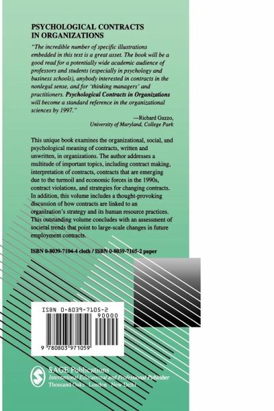 The organizational, social and psychological meanings of contracts, both written and unwritten, are the focus of this volume. The author addresses a number of important topics including contract making, interpretation of contracts, contract violations, strategies for changing contracts and contracts evolving from circumstances relevant to the 1990s. In addition, a thought-provoking discussion of how contracts are linked to an organization's strategy and its human resource practices is included. The book concludes with an assessment of societal trends that point to large scale changes in future employment contracts.…mehr