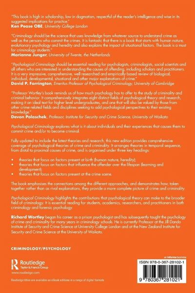 "Psychological Criminology should be essential reading for psychologists, criminologists, social scientists and all others who are interested in understanding the causes of offending, including scholars and practitioners. It is a very impressive, comprehensive, well-researched and empirically-based review of biological, individual, developmental, situational and other major explanations of crime."