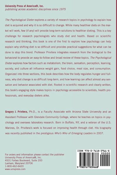 The Psychological Dieter explores a variety of research topics in psychology to explain how diet is acquired and why it is so difficult to change. While many healthier diets on the market will work, few (if any) will provide long-term solutions to healthier dieting. This is a key challenge for research psychologists who study diet and health. Based on scientific research and thinking, this book is one of the first to explore how psychology can help explain why shifting diet is so difficult and provides practical suggestions for what can be done to stop this trend. Professor Privitera integrates research from the biological to the behavioral to provide an easy to follow and broad review of these topics. The Psychological Dieter explores how factors such as metabolism, the brain, sensation, perception, learning, society, and culture all influence weight gain, food choice, meal size, and consumption. Organized into three sections, this book describes how the body regulates hunger and fullness, why diet change is so difficult long-term, and how learning can affect almost any sensation and behavior associated with diet. Rooted in scientific research and clearly written, this book's engaging style makes topics in psychology accessible to scientists, health professionals, and everyday dieters alike.