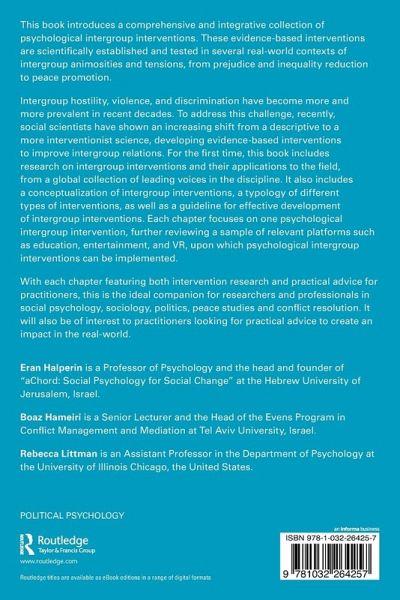 With each chapter featuring both intervention research and practical advice for practitioners, this is the ideal companion for researchers and professionals in social psychology, sociology, politics, peace studies and conflict resolution. It will also be of interest to practitioners looking for practical advice to create an impact in the real-world.