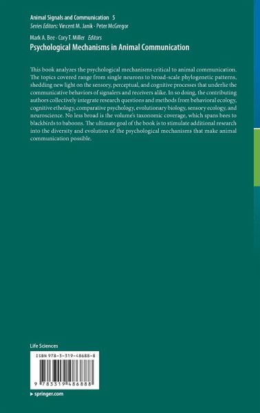 This book analyzes the psychological mechanisms critical to animal communication. The topics covered range from single neurons to broad-scale phylogenetic patterns, shedding new light on the sensory, perceptual, and cognitive processes that underlie the communicative behaviors of signalers and receivers alike. In so doing, the contributing authors collectively integrate research questions and methods from behavioral ecology, cognitive ethology, comparative psychology, evolutionary biology, sensory ecology, and neuroscience. No less broad is the volume's taxonomic coverage, which spans bees to blackbirds to baboons. The ultimate goal of the book is to stimulate additional research into the diversity and evolution of the psychological mechanisms that make animal communication possible.