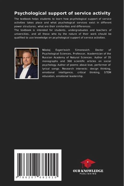 The textbook helps students to learn how psychological support of service activities takes place and what psychological services exist in different power structures, what are their similarities and differences.The textbook is intended for students, undergraduates and teachers of universities, and all those who by the nature of their work should be qualified to use knowledge on psychological support of service activities.