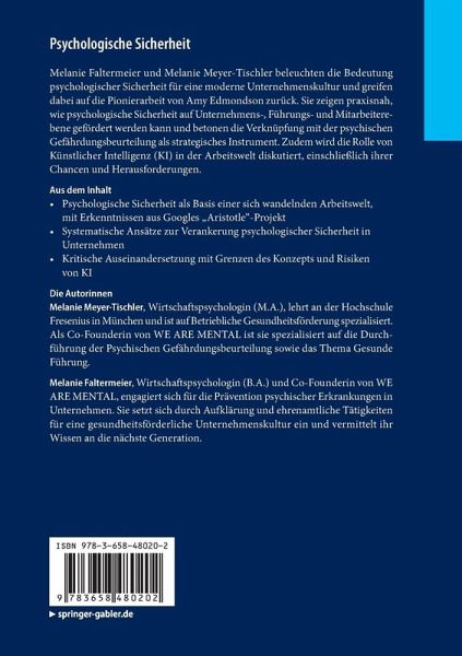 Melanie Faltermeier und Melanie Meyer-Tischler beleuchten die Bedeutung psychologischer Sicherheit für eine moderne Unternehmenskultur und greifen dabei auf die Pionierarbeit von Amy Edmondson zurück. Sie zeigen praxisnah, wie psychologische Sicherheit auf Unternehmens-, Führungs- und Mitarbeiterebene gefördert werden kann und betonen die Verknüpfung mit der psychischen Gefährdungsbeurteilung als strategisches Instrument. Zudem wird die Rolle von Künstlicher Intelligenz (KI) in der Arbeitswelt diskutiert, einschließlich ihrer Chancen und Herausforderungen.