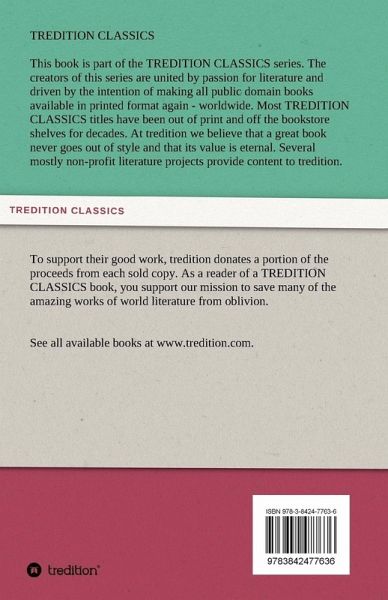 This book is part of the TREDITION CLASSICS series. The creators of this series are united by passion for literature and driven by the intention of making all public domain books available in printed format again - worldwide. At tredition we believe that a great book never goes out of style. Several mostly non-profit literature projects provide content to tredition. To support their good work, tredition donates a portion of the proceeds from each sold copy. As a reader of a TREDITION CLASSICS book, you support our mission to save many of the amazing works of world literature from oblivion.