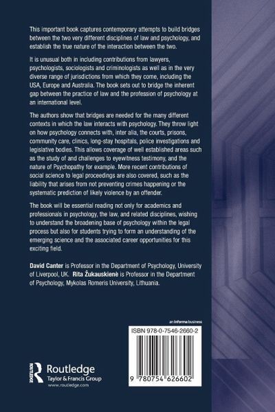 This important book captures contemporary attempts to build bridges between the two very different disciplines of law and psychology and to establish the true nature of the interaction between the two. Including international contributions from lawyers, psychologists, sociologists and criminologists, the book bridges the inherent gap between the practice of law and the profession of psychology at an international level. It throws light on how psychology connects with, inter alia, the courts, prisons, community care, clinics, long-stay hospitals, police investigations and legislative bodies. More recent contributions of social science to legal proceedings are also covered, such as the liability that arises from lack of crime prevention, or the systematic prediction of likely violence by an offender. The book will be essential reading not only for academics and professionals in psychology, the law and related disciplines wishing to understand the broadening base of psychology within the legal process, but also for students trying to form an understanding of the emerging science and the associated career opportunities for this exciting field.