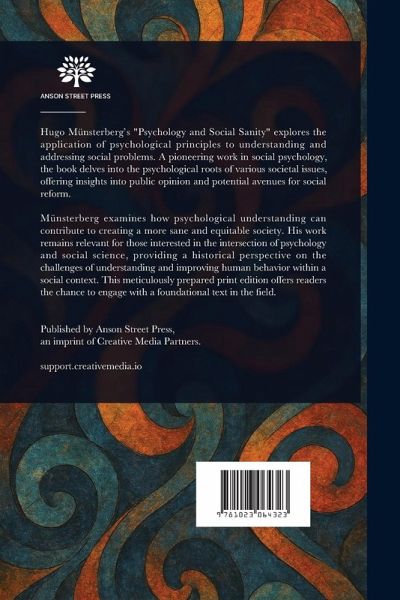 Hugo Münsterberg's "Psychology and Social Sanity" explores the application of psychological principles to understanding and addressing social problems. A pioneering work in social psychology, the book delves into the psychological roots of various societal issues, offering insights into public opinion and potential avenues for social reform. Münsterberg examines how psychological understanding can contribute to creating a more sane and equitable society. His work remains relevant for those interested in the intersection of psychology and social science, providing a historical perspective on the challenges of understanding and improving human behavior within a social context. This meticulously prepared print edition offers readers the chance to engage with a foundational text in the field. This work has been selected by scholars as being culturally important, and is part of the knowledge base of civilization as we know it. This work is in the public domain in the United States of America, and possibly other nations. Within the United States, you may freely copy and distribute this work, as no entity (individual or corporate) has a copyright on the body of the work. Scholars believe, and we concur, that this work is important enough to be preserved, reproduced, and made generally available to the public. We appreciate your support of the preservation process, and thank you for being an important part of keeping this knowledge alive and relevant.