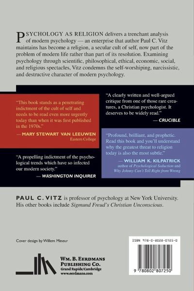 A trenchant analysis of modern psychology -- an enterprise that Paul Vitz maintains has become a religion, a secular cult of self, now part of the problem of modern life rather than part of its resolution. Virtually rewritten, this second edition of the original 1977 text takes into account much of what has happened in the field of psychology during the past seventeen years. Two completely new chapters are also included -- one on education and "values clarification" and the other on New Age religion.