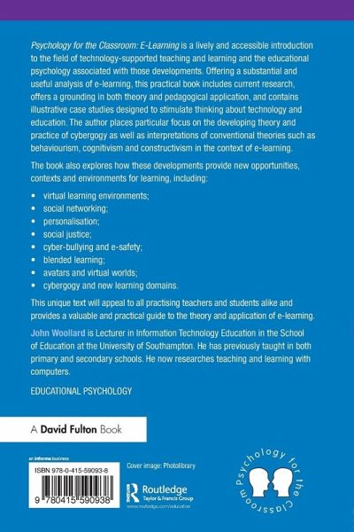 Psychology for the Classroom: E-Learning is a lively and accessible introduction to the field of technology-supported teaching and learning and the educational psychology associated with those developments. Offering a substantial and useful analysis of e-learning, this practical book includes current research, offers a grounding in both theory and pedagogical application, and contains illustrative case studies designed to stimulate thinking about technology and education. The author places particular focus on the developing theory and practice of cybergogy as well as interpretations of conventional theories such as behaviourism, cognitivism and constructivism in the context of e-learning. The book also explores how these developments provide new opportunities, contexts and environments for learning, including: virtual learning environments; social networking; personalisation; social justice; cyber-bullying and e-safety; blended learning; avatars and virtual worlds; cybergogy and new learning domains. This unique text will appeal to all practising teachers and students alike and provides a valuable and practical guide to the theory and application of e-learning.