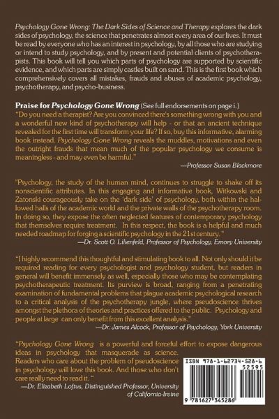 Psychology Gone Wrong: The Dark Sides of Science and Therapy explores the dark sides of psychology, the science that penetrates almost every area of our lives. It must be read by everyone who has an interest in psychology, by all those who are studying or intend to study psychology, and by present and potential clients of psychotherapists. This book will tell you which parts of psychology are supported by scientific evidence, and which parts are simply castles built on sand. This is the first book which comprehensively covers all mistakes, frauds and abuses of academic psychology, psychotherapy, and psycho-business.