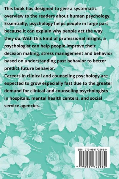 This book has designed to give a systematic overview to the readers about human psychology. Essentially, psychology helps people in large part because it can explain why people act the way they do. With this kind of professional insight, a psychologist can help people improve their decision making, stress management and behavior based on understanding past behavior to better predict future behavior. Careers in clinical and counseling psychology are expected to grow especially fast due to the greater demand for clinical and counseling psychologists in hospitals, mental health centers, and social service agencies.
