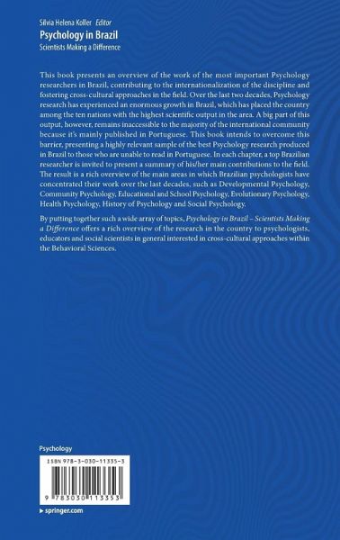 By putting together such a wide array of topics, Psychology in Brazil - Scientists Making a Difference offers a rich overview of the research in the country to psychologists, educators and social scientists in general interested in cross-cultural approaches within the Behavioral Sciences.