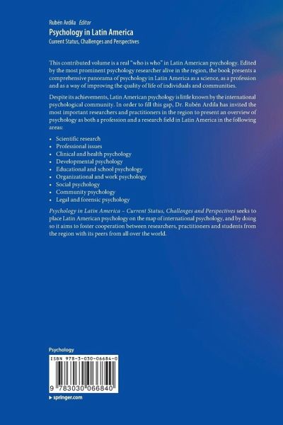 Psychology in Latin America - Current Status, Challenges and Perspectives seeks to place Latin American psychology on the map of international psychology, and by doing so it aims to foster cooperation between researchers, practitioners and students from the region with its peers from all over the world.