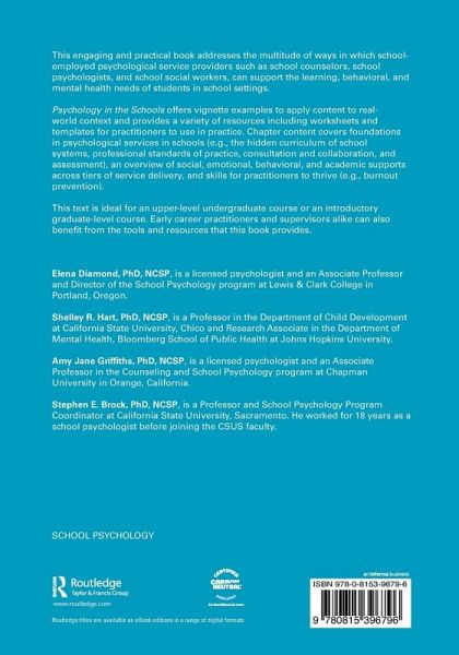 Psychology in the Schools offers vignette examples to apply content to real-world context and provides a variety of resources including worksheets and templates for practitioners to use in practice. Chapter content covers foundations in psychological services in schools (e.g., the hidden curriculum of