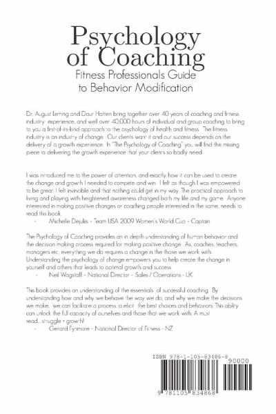 Dr. August Leming and Dour Hatten bring together over 40 years of coaching and fitness industry experience, and well over 40,000 hours of individual and group coaching to bring to you a first-of-its-kind approach to the psychology of health and fitness. The fitness industry is an industry of change. Our clients want it and our success depends on the delivery of a growth experience. In "The Psychology of Coaching" you will find the missing piece to delivering the growth experience that your clients so badly need.