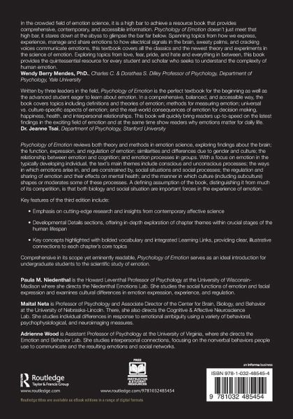 Psychology of Emotion reviews both theory and methods in emotion science, exploring findings about the brain; the function, expression, and regulation of emotion; similarities and differences due to gender and culture; the relationship between emotion and cognition; and emotion processes in groups. With a focus on emotion in the typically developing individual, the text's main themes include conscious and unconscious processes; the ways in which emotions arise in, and are constrained by, social situations and social processes; the regulation and sharing of emotion and their effects on mental…mehr