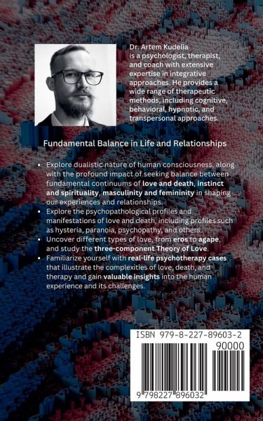 How do you achieve fundamental balance in life and relationships? In this philosophical and psychological book, the dualistic nature of human consciousness is explored, along with the profound impact of seeking balance between fundamental continuums of love, death, instinct, spirituality, masculinity, and femininity in shaping our experiences and relationships.Uncover the benefits of this book as you delve into key topics and approaches in the psychology of love and death. Explore the psychopathological profiles and manifestations of love and death, including profiles such as hysteria, paranoia, psychopathy, and others. Gain an understanding of the philosophy of perception and the connection between spiral dynamics and the dynamics of love and death. Uncover different types of love, from eros to agape, and study the Three-component Theory of Love in psychoanalysis. Immerse yourself in the matrix of love combinations and grasp the factors influencing the onset of love, including partner sexuality, family dynamics, emotional connection, and much more. Familiarize yourself with real-life cases that illustrate the complexities of love, death, and therapy, and gain valuable insights into the human experience and its challenges. This book is essential for psychologists, therapists, and individuals seeking to deepen their understanding of love, death, and their influence on relationships and personal growth. By reading this book, you will gain a comprehensive perspective on the philosophy of love, explore psychological profiles and manifestations, and acquire practical insights to navigate the complexities of love and death in your own life. Embark on a transformative journey to find fundamental balance in life and relationships. Esteemed authors, experts in this field, invite you to actively engage with the content, reflect on your own experiences, and apply the insights gained to improve relationships and personal well-being.