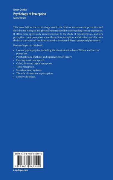 This book defines the terminology used in the fields of sensation and perception and describes the biological and physical bases required for understanding sensory experiences. It offers more specifically an introduction to the study of psychophysics, auditory perception, visual perception, somesthesia, time perception, and attention, and discusses the basic concepts and mechanisms used to interpret different perceptual phenomena.
