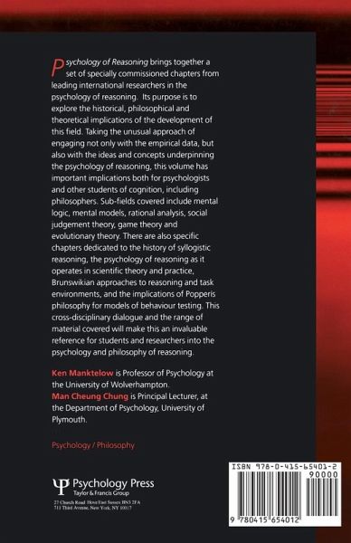This collection brings together a set of specially commissioned chapters from leading international researchers in the psychology of reasoning. Its purpose is to explore the historical, philosophical and theoretical implications of the development of this field. Taking the unusual approach of engaging not only with empirical data but also with the ideas and concepts underpinning the psychology of reasoning, this volume has important implications both for psychologists and other students of cognition, including philosophers. Sub-fields covered include mental logic, mental models, rational analysis, social judgement theory, game theory and evolutionary theory. There are also specific chapters dedicated to the history of syllogistic reasoning, the psychology of reasoning as it operates in scientific theory and practice, Brunswickian approaches to reasoning and task environments, and the implications of Popper's philosophy for models of behaviour testing. This cross-disciplinary dialogue and the range of material covered makes this an invaluable reference for students and researchers into the psychology and philosophy of reasoning.