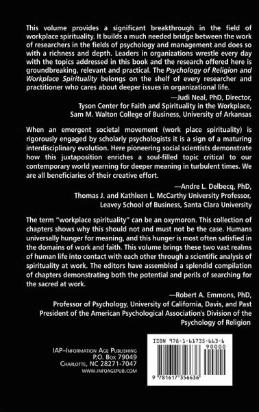 This book, the first of a groundbreaking series, provides a solid theoretical and empirical grounding from the psychology of religion and spirituality to the emerging field of workplace spirituality. Leading researchers in the psychology of religion have contributed up-to-date reviews within their areas of expertise to help guide the emergence of this exciting new discipline. Each chapter is written with the workplace researcher in mind. Not only is the relevant literature from the psychology of religion reviewed, but it is also made relevant to the workplace setting. The religious and spiritual aspects of such topics as meaning making, emotional resilience, sense of calling, coping with stress, occupational health and well-being, and leadership, among others are discussed within the context of work life. Surely researchers interested in workplace spirituality will keep this book, as well as others in the series, within arm's reach for years to come.