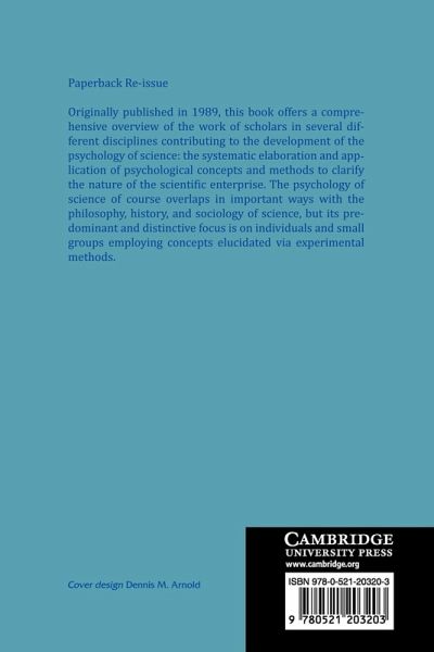 Originally published in 1989, this book offers a comprehensive overview of the work of scholars in several different disciplines contributing to the development of the psychology of science: the systematic elaboration and application of psychological concepts and methods to clarify the nature of the scientific enterprise. The psychology of science of course overlaps in important ways with the philosophy, history, and sociology of science, but its predominant and distinctive focus is on individuals and small groups employing concepts elucidated via experimental methods.