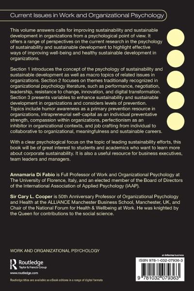 This volume shows ways to improve sustainability and sustainable development in organizations from a psychological point of view. It offers a range of perspectives and effective ways of improving the well-being and healthy sustainable development in organizations.