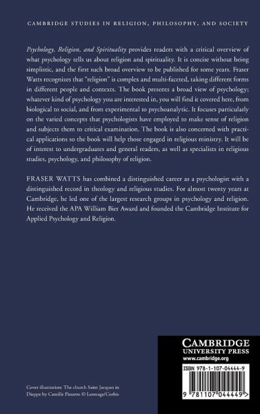 Psychology, Religion, and Spirituality provides readers with a critical overview of what psychology tells us about religion and spirituality. It is concise without being simplistic, and the first such broad overview to be published for some years. Fraser Watts recognizes that 'religion' is complex and multi-faceted, taking different forms in different people and contexts. The book presents a broad view of psychology; whatever kind of psychology you are interested in, you will find it covered here, from biological to social, and from experimental to psychoanalytic. It focuses particularly on the varied concepts that psychologists have employed to make sense of religion and subjects them to critical examination. The book is also concerned with practical applications, helping those engaged in religious ministry. It will be of interest to undergraduates and general readers, as well as specialists in religious studies, psychology, and philosophy of religion.
