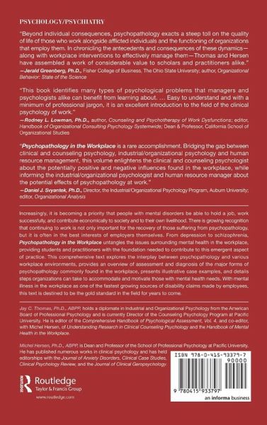This text provides students and professionals with the knowledge they need to treat work-related psychopathology and contribute to this new and growing aspect of clinical practice.