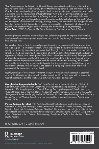 Psychopathology of the Situation in Gestalt Therapy: A Field-oriented Approach is essential reading for Gestalt therapists as well as all clinicians with an interest in phenomenological and aesthetic understanding of the complexity of clinical situations.