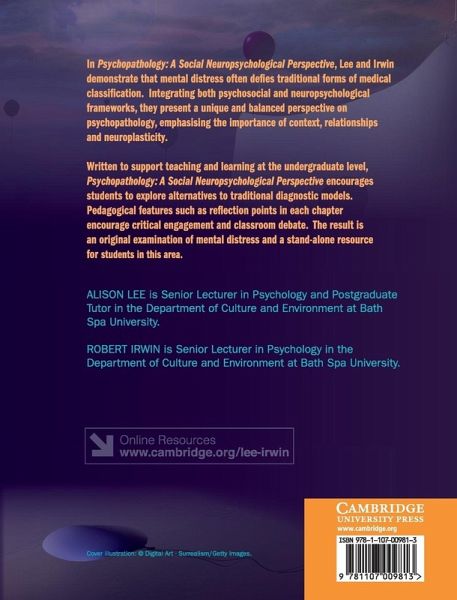 In Psychopathology: A Social Neuropsychological Perspective, Lee and Irwin demonstrate that mental distress often defies traditional forms of medical classification. Integrating both psychosocial and neuropsychological frameworks, they present a unique and balanced perspective on psychopathology, emphasising the importance of context, relationships and neuroplasticity. Written to support teaching and learning at the undergraduate level, Psychopathology: A Social Neuropsychological Perspective encourages students to explore alternatives to traditional diagnostic models. Pedagogical features such as reflection points in each chapter encourage critical engagement and classroom debate. The result is an original examination of mental distress and a stand-alone resource for students in this area.