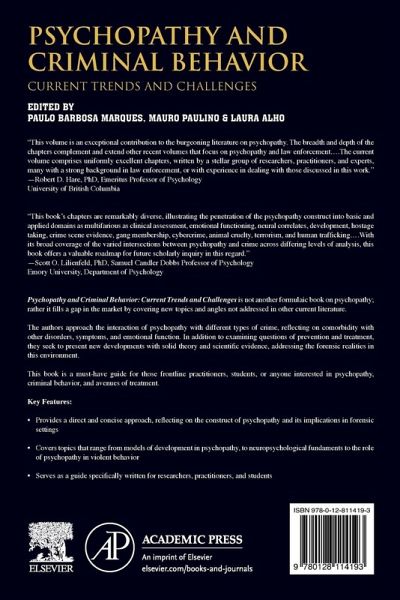 "...The editors have impressive scholarly and applied experiences in criminology, psychology, and the forensic sciences, and their diverse professional experiences translate into a highly accessible and eminently interesting volume. The book is valuable for criminologists, consultants, attorneys, prosecutors, true crime aficionados, and criminal justice students alike, and is worthy of a read. Psychopathy and criminal behavior: Current trends and challenges is the most useful, insightful, and cogent volume on psychopathy in my library" --Journal of Forensic Sciences